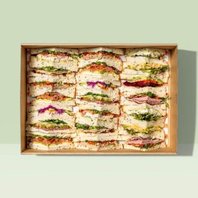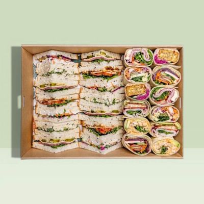 $14.00/ per person which starts at a minimum of 4 people. The option to add people is available. An assortment of freshly made sandwiches and wraps with quality gourmet fillings, beautifully prepared for sharing. Simply select the number of people you’d like to cater for. Each person receives approximately 1.5 sandwiches or wraps (around 4–5 pieces per person). Platters include 20% vegetarian options. If you’d prefer a higher or lower vegetarian selection, please leave a note at checkout. Gluten-free and vegan options are available — simply let us know in the notes box how many people you require and we’ll prepare a separate box. Depending on the size of your order, your catering may be presented across a mix of large and small platters for the best display.