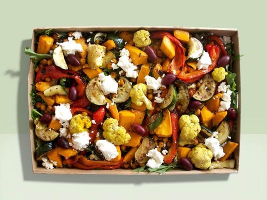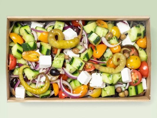 Ideal for working lunches, corporate seminars, and social gatherings, our Greek Salad is loaded with fresh, vibrant ingredients for a healthy and flavour-packed option. Includes: Lebanese cucumber, cherry tomatoes, Spanish onion, mixed greens, feta, pickles, olives, and a zesty lemon & oregano dressing (V/GF).”