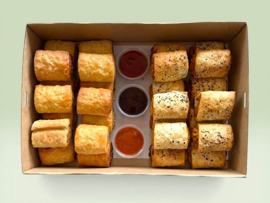 30-piece premium selection of artisan baked cocktail rolls, featuring spinach & ricotta and roasted pumpkin & ricotta for vegetarians, alongside a curated mix of beef, lamb, and chorizo. Serves 15 as side.