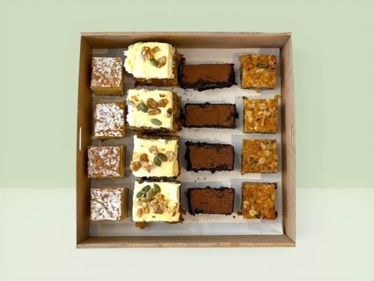 A delicious mix of lemon coconut bar, carrot cake, gluten-free brownie and oat & date bar — perfect for meetings and afternoon tea. Serves 4-6 as a coffee side.