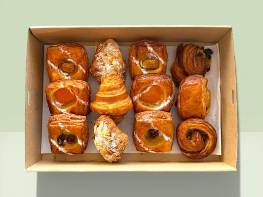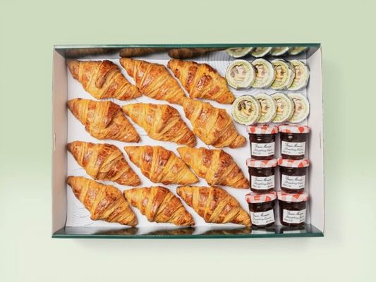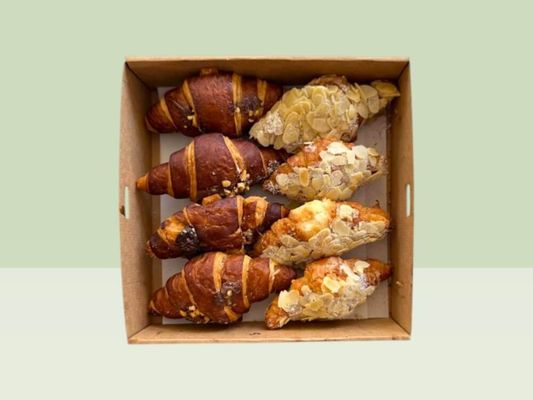 A mixed box of 4 Nutella croissants and 4 almond croissants - perfect for sharing at meetings and morning tea. Serves 5-8 as a coffee side.
