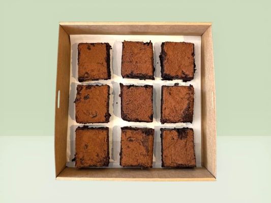 9x Gluten Free Triple Chocolate Brownie is scrumptious. It’s a dense, soft rectangular slice with a rich chocolatey taste and a fine dusting of quality cocoa powder to finish.